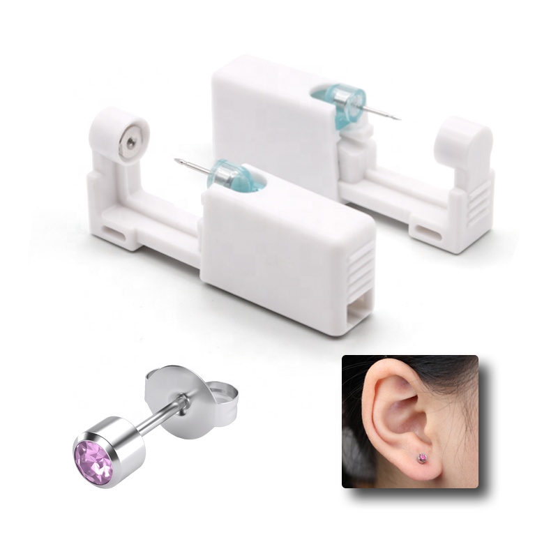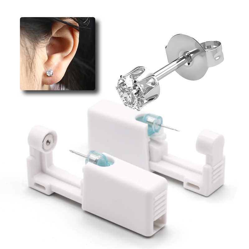 Kendinden kulak Piercing tabancası ile Mini beyaz kristal çiviler kişisel kulak Piercing aracı kiti ağrısız kulak delici tek kullanımlık