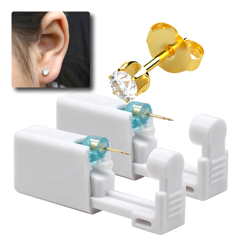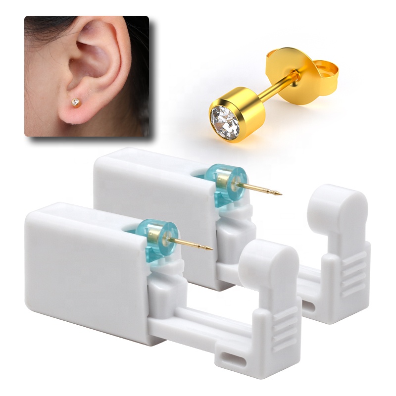 Self servis kulak Piercing tabancası-G1 altın kaplama beyaz kristal çıtçıt, ağrısız kulak delici seti tek kullanımlık, güvenli kulak Piercing